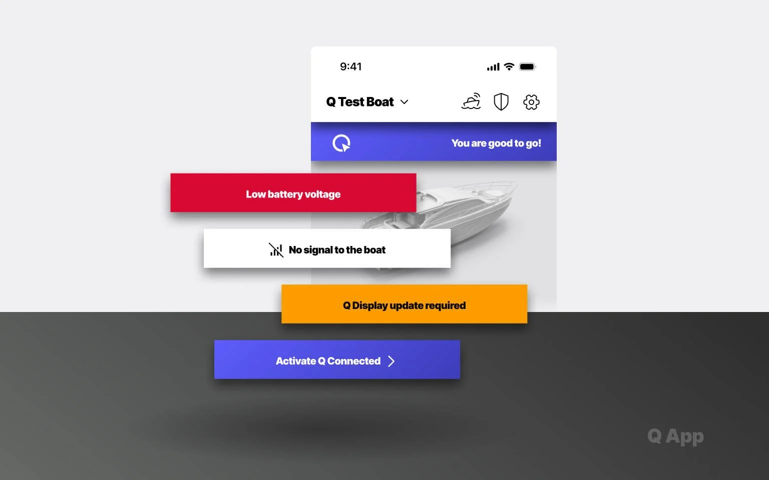 The Q App has been completely renewed this spring. Everything from the home page to Q Guard alerts has been redesigned with one goal in mind: making it easier to know what is happening on your boat and to act on it.