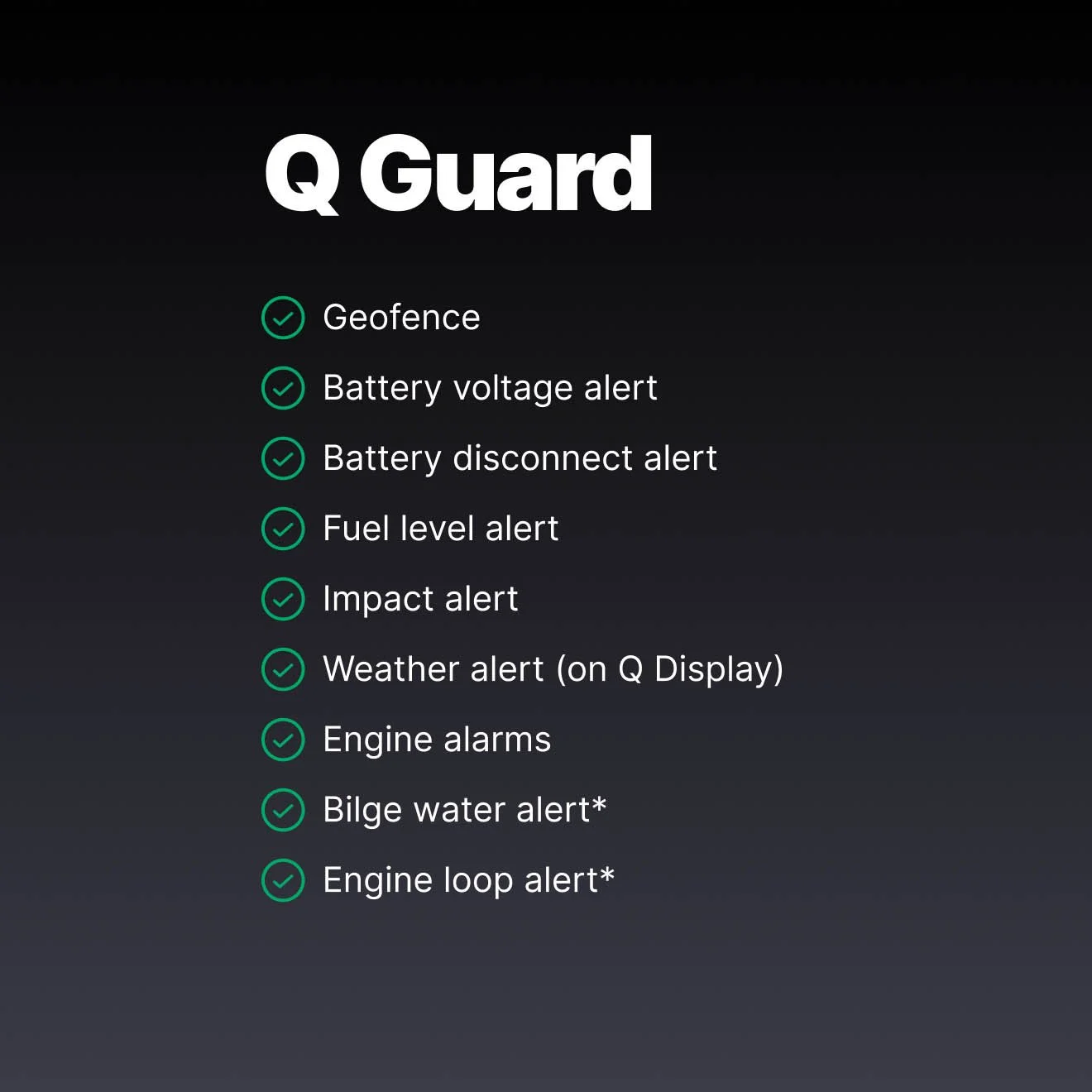 Q Connected is a subscription service that takes your Q Display online 24/7, giving you access to many smart features on your boat and offshore through the Q App. Q Connected improves your boating experience by letting you easily monitor and control various functions even when away from the boat.