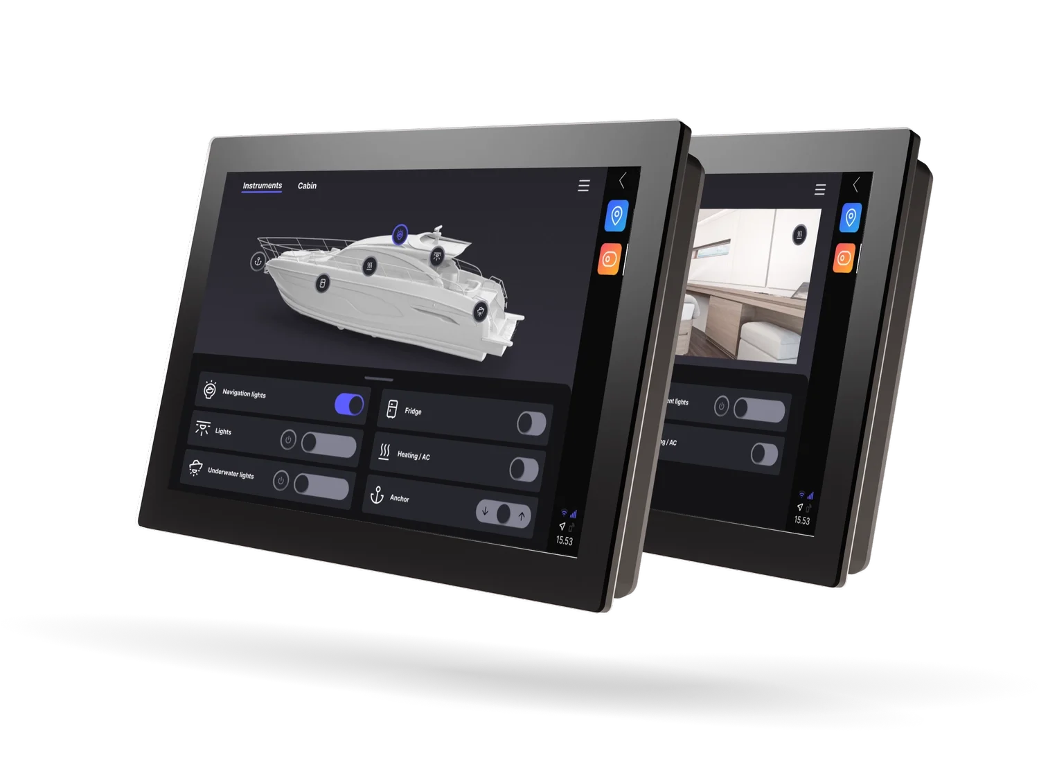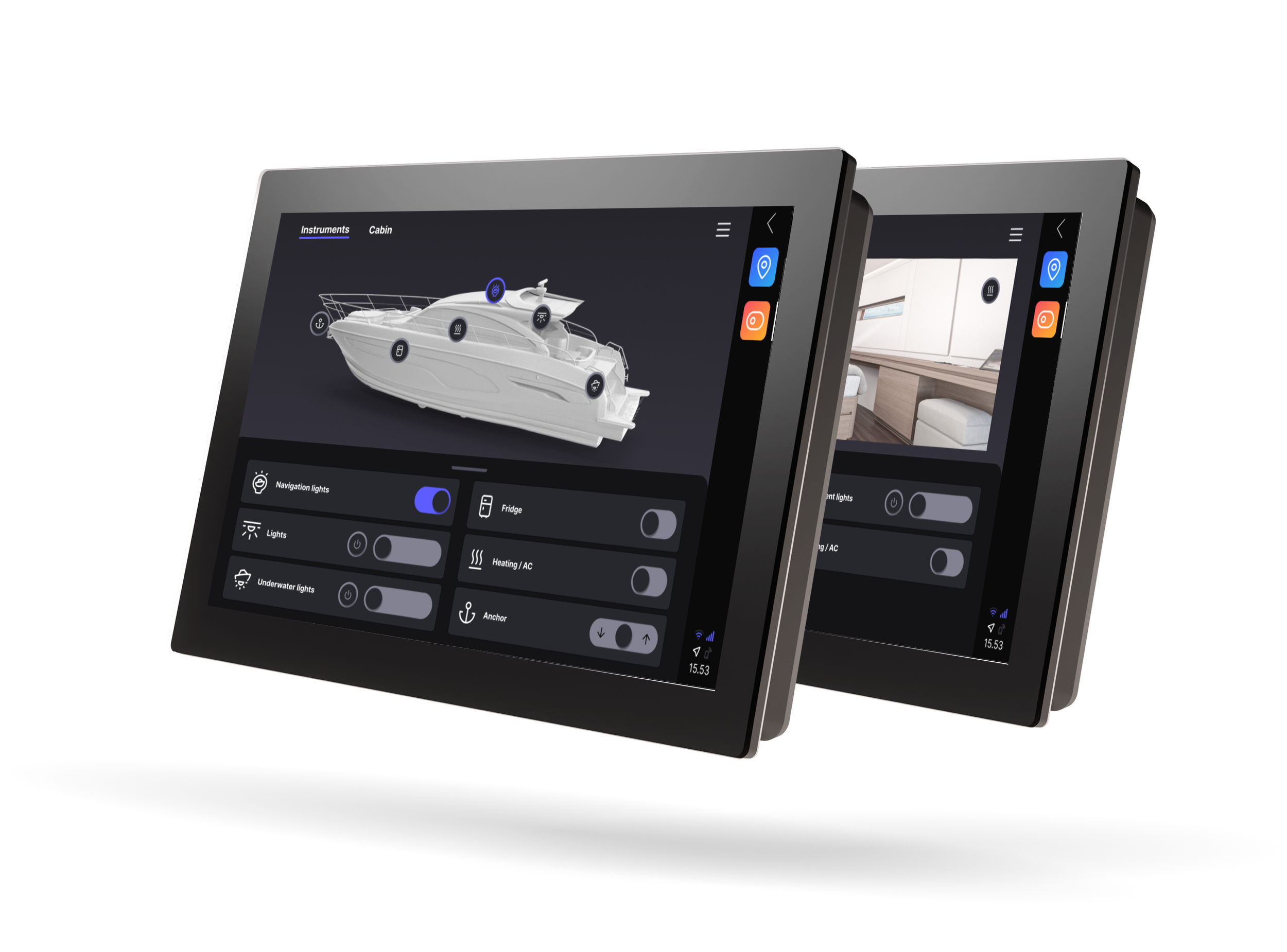 A superior alternative to conventional switches, providing digital control over all the boat’s equipment. Want to dim the lights, close the hatch, or turn on the heating? Just tap the control on the boat where the system is located, and the function responds instantly - right at your fingertips.